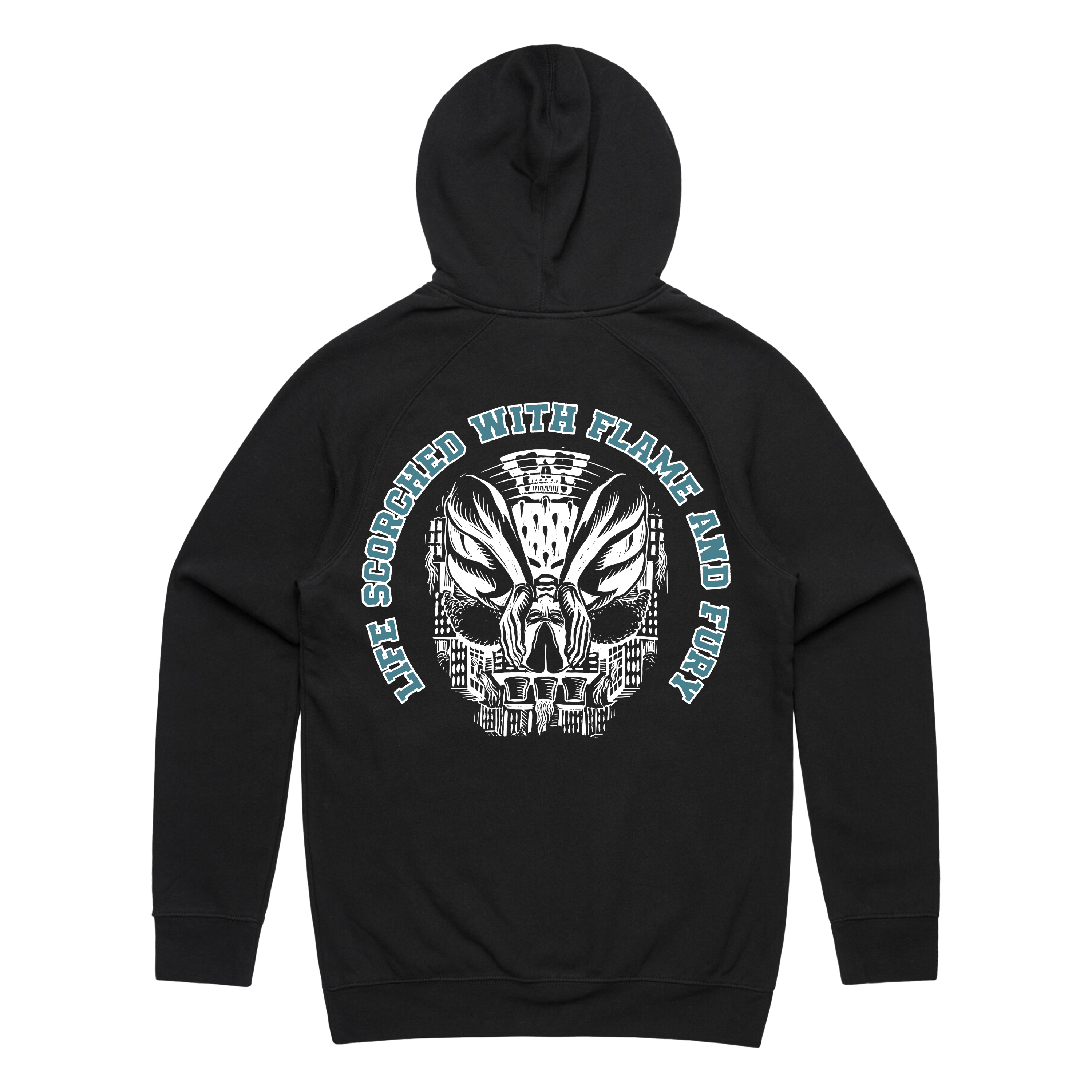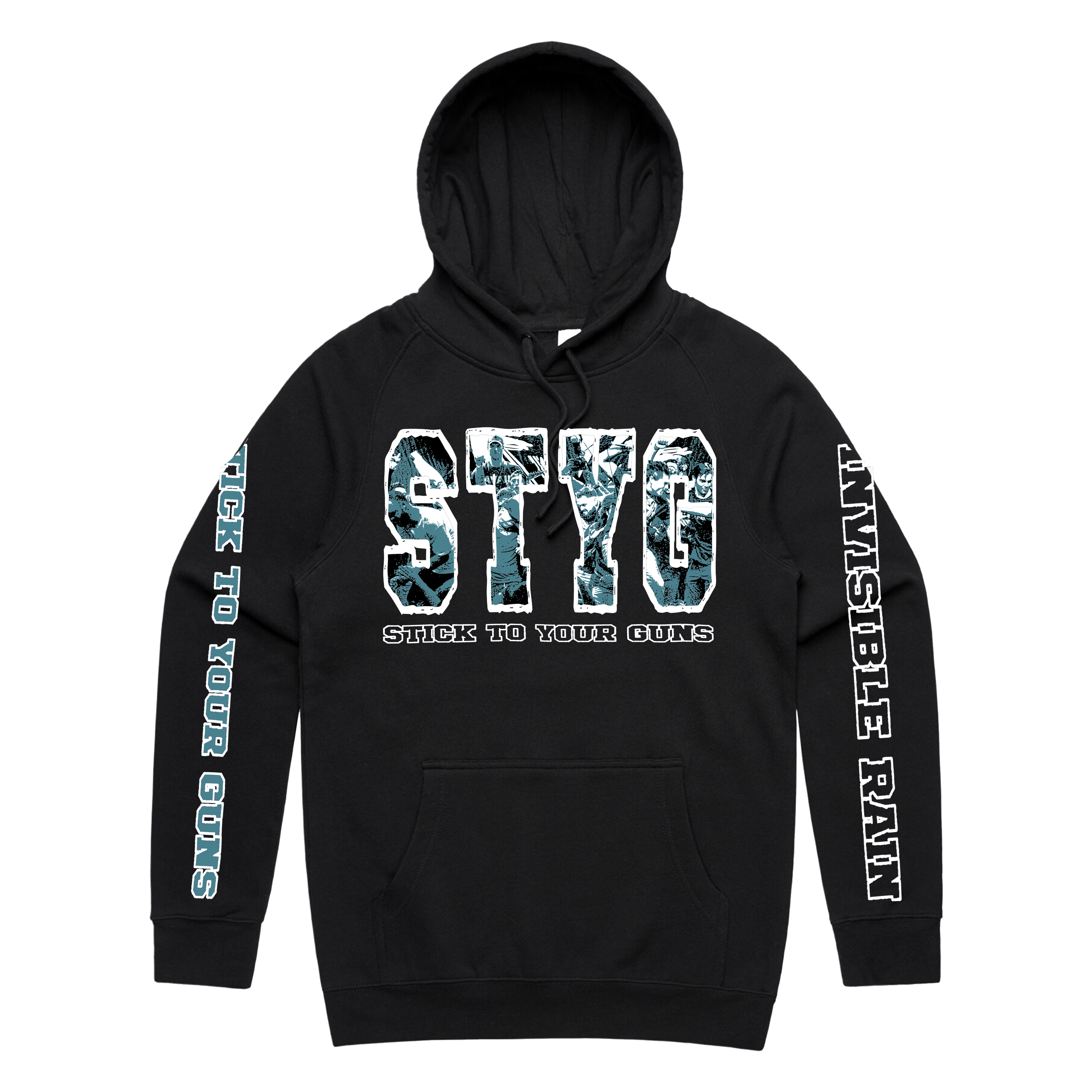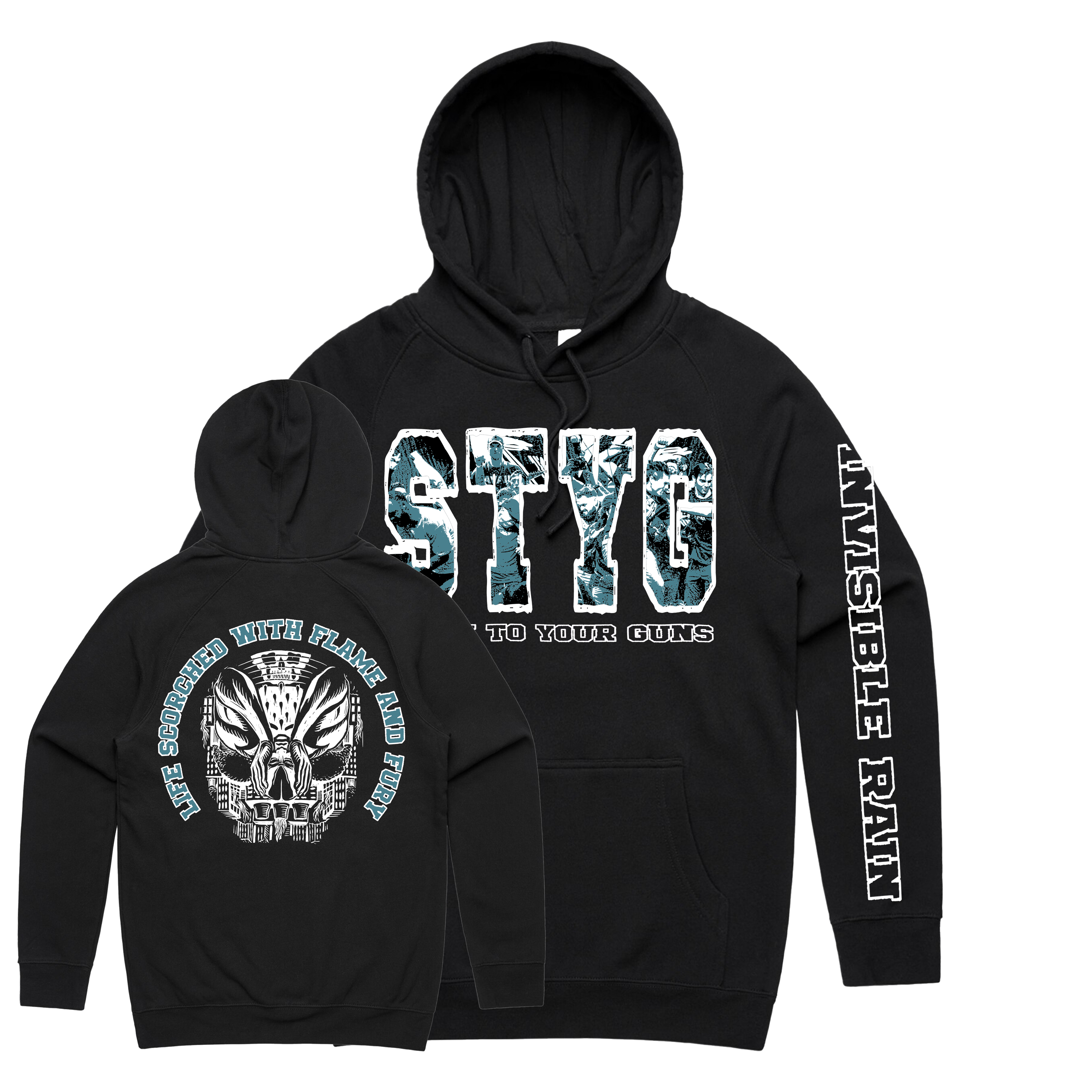 Black pullover hoodie. Printed on Independent brand hoodies.