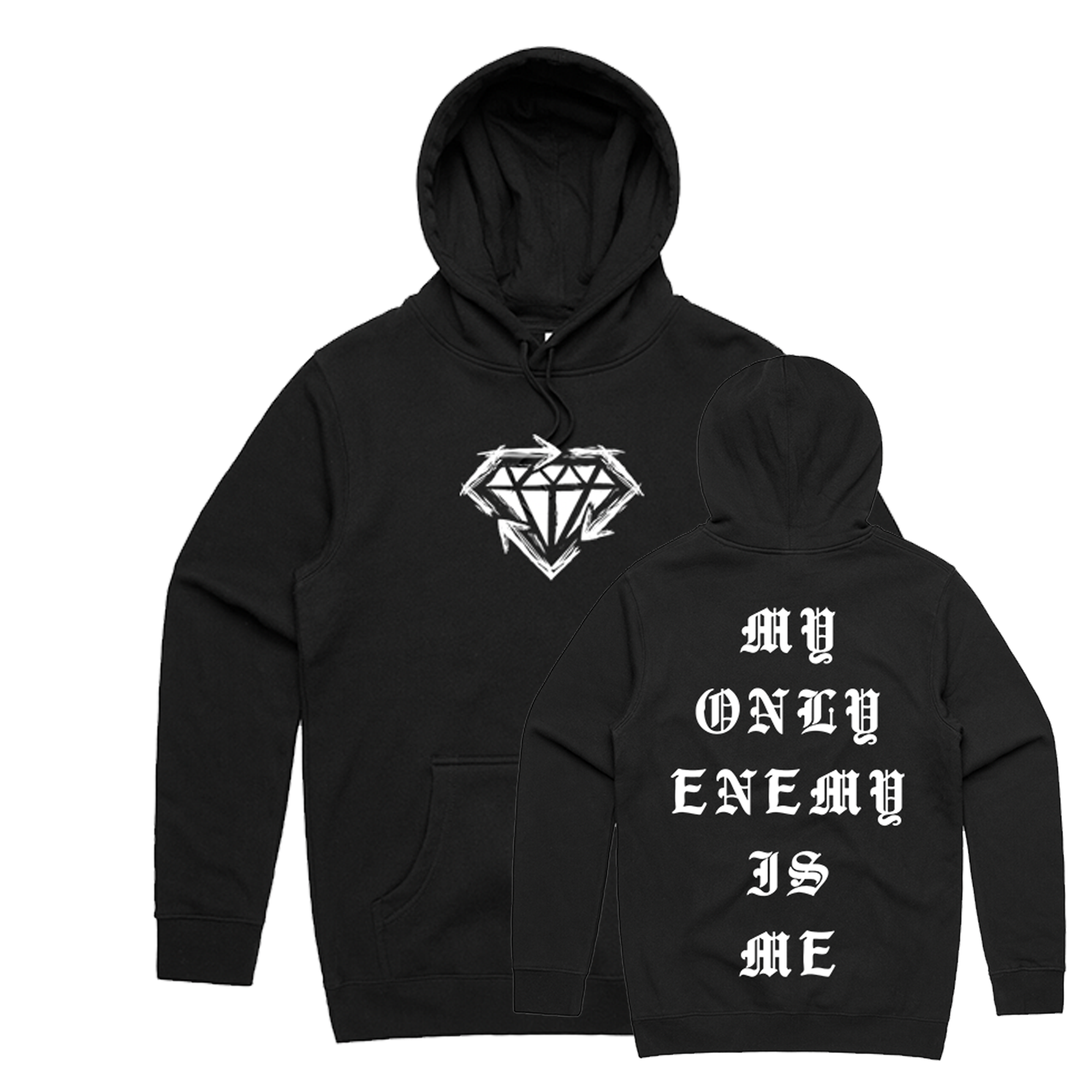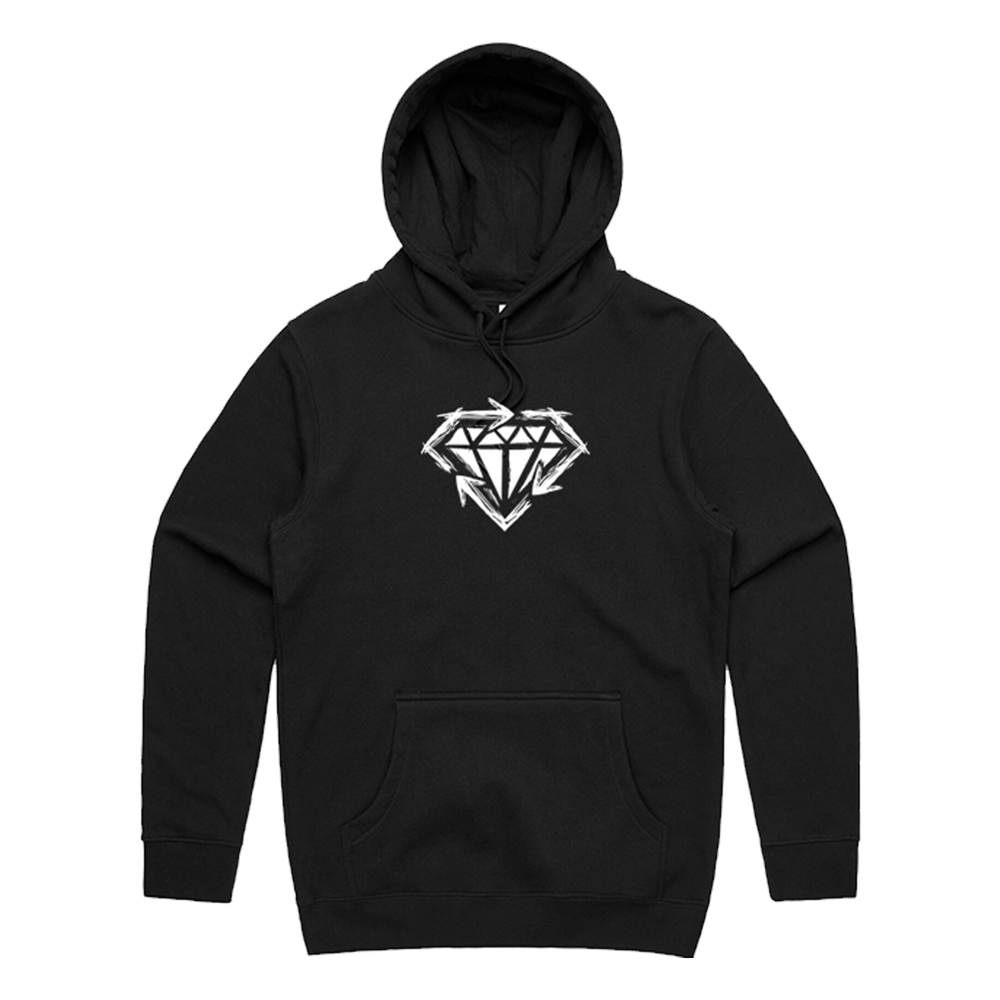 Black pullover hoodie. Printed on Champion brand hoodies.