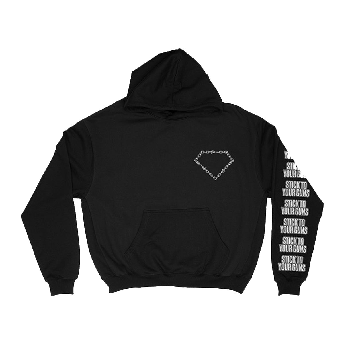 Black pullover hoodie. Printed on Independent Trading Co brand hoodies.