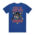 Royal blue t-shirt. Printed on Gildan brand tees.